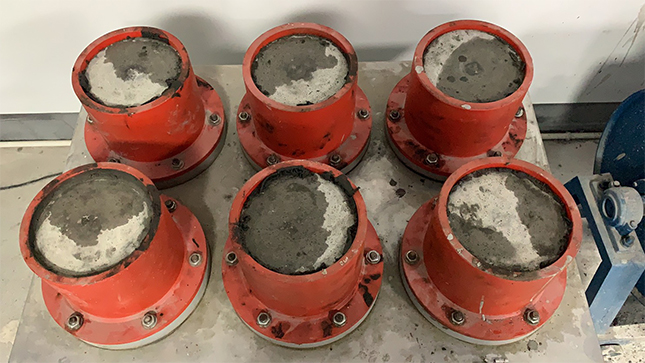 标准混凝土抗渗试模成型,抗渗试块预留不同宽度的缝隙,0.2mm缝隙、0.3mm缝隙、0.4mm缝隙,缝隙为贯穿性。